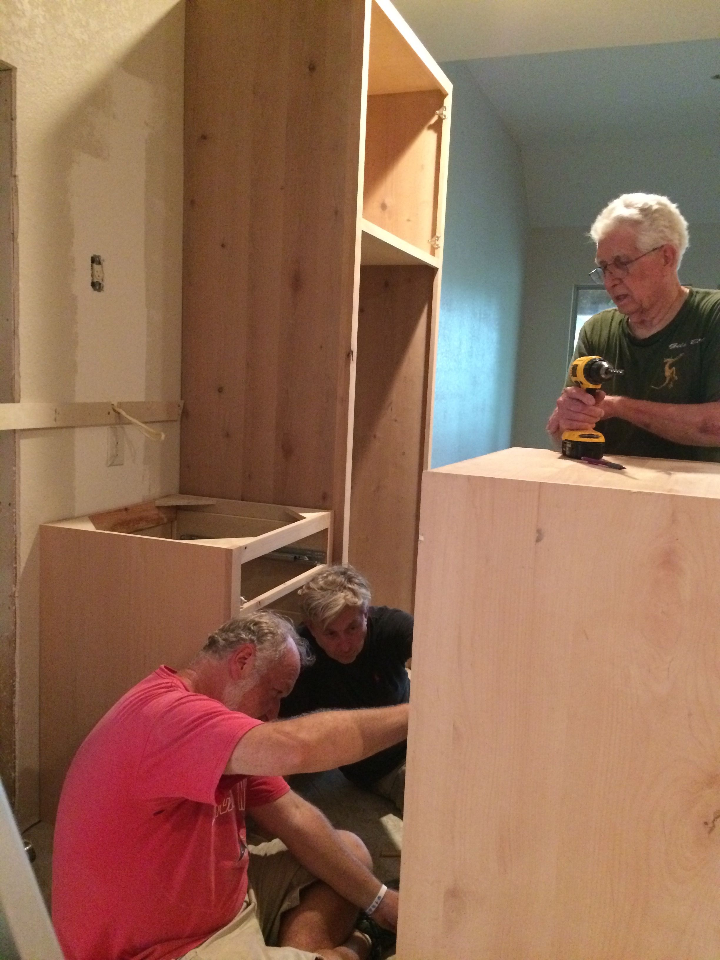 A very dear friend of ours, Rick Jones, and Jon’s dad showed up Wednesday morning to install the cabinets. Jon could not have done it without them and we so appreciate their hard work.