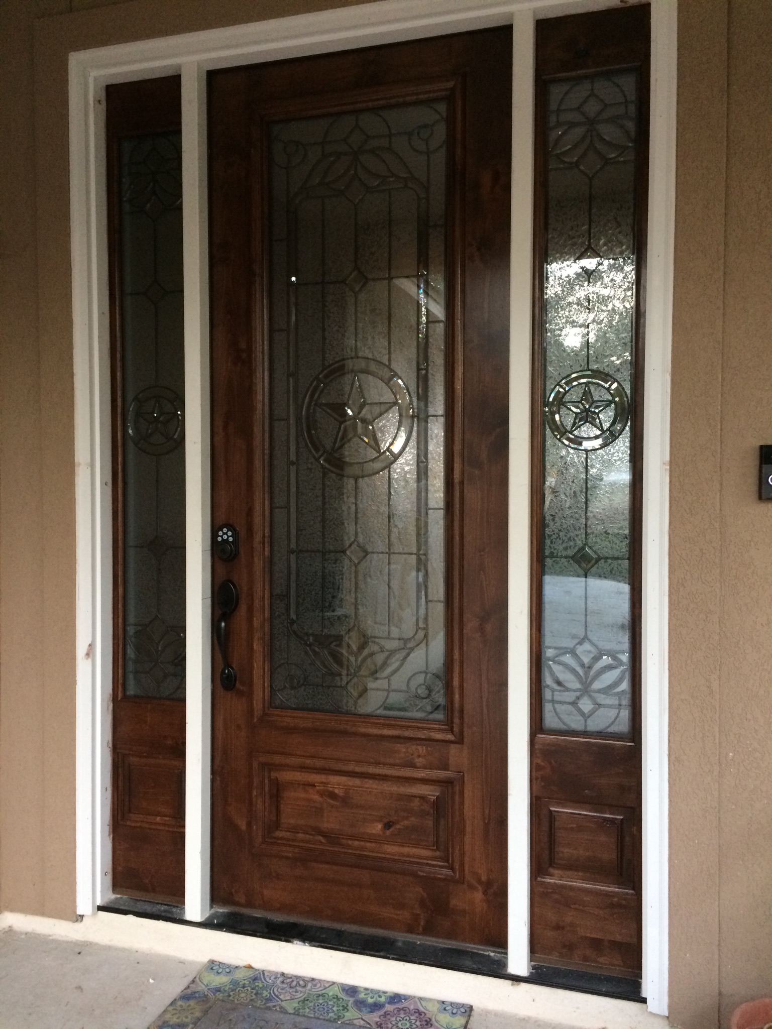 If only that were the end of our frustrations. Our doors have been another source. Primarily the front and back patio doors. I lost count of how many times the delivery was rescheduled. When they finally showed up, the front door had been milled wrong and the hinges did not line up with the hinges on the frame. We were quite vexed to send it back. And the same thing happened again with delayed delivery. We persisted and the door was delivered, but not installed, on a Saturday morning so Fernando could stain it and the back doors. After a few more phone calls, installers showed up this past week and Fernando sent out his guys on Saturday to finish them up. They look amazing.