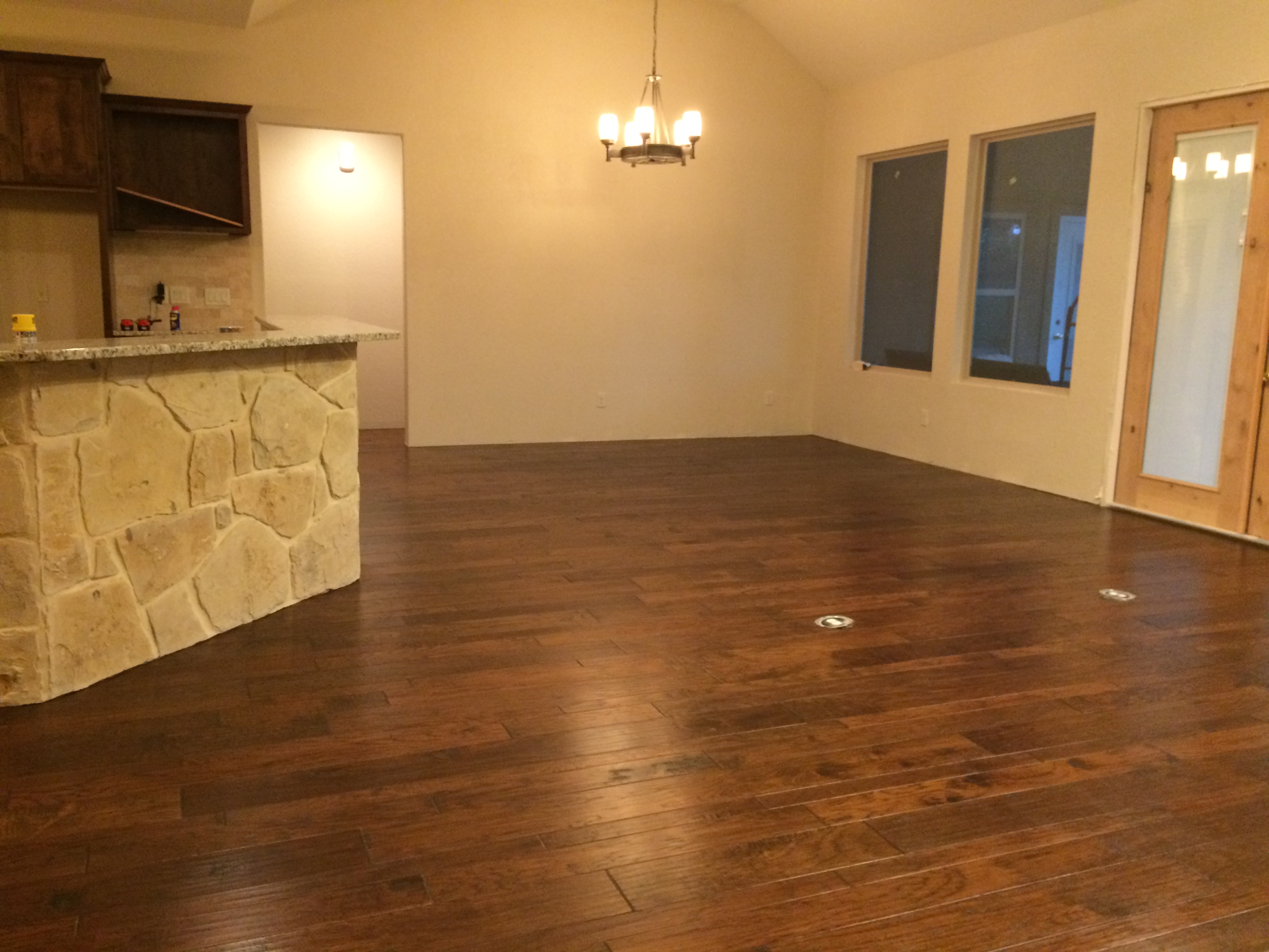 I love our wood floors. And the flow of the great room and kitchen. I love the idea of friends and family gathering in this space.