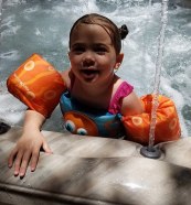 We spent a little time working on the deck while Scarlette played and then in the evenings, we relaxed in our spa tub (Jon’s father’s day present finally arrived) on our patio. Scarlette loves Grampy’s “swimming pool.”