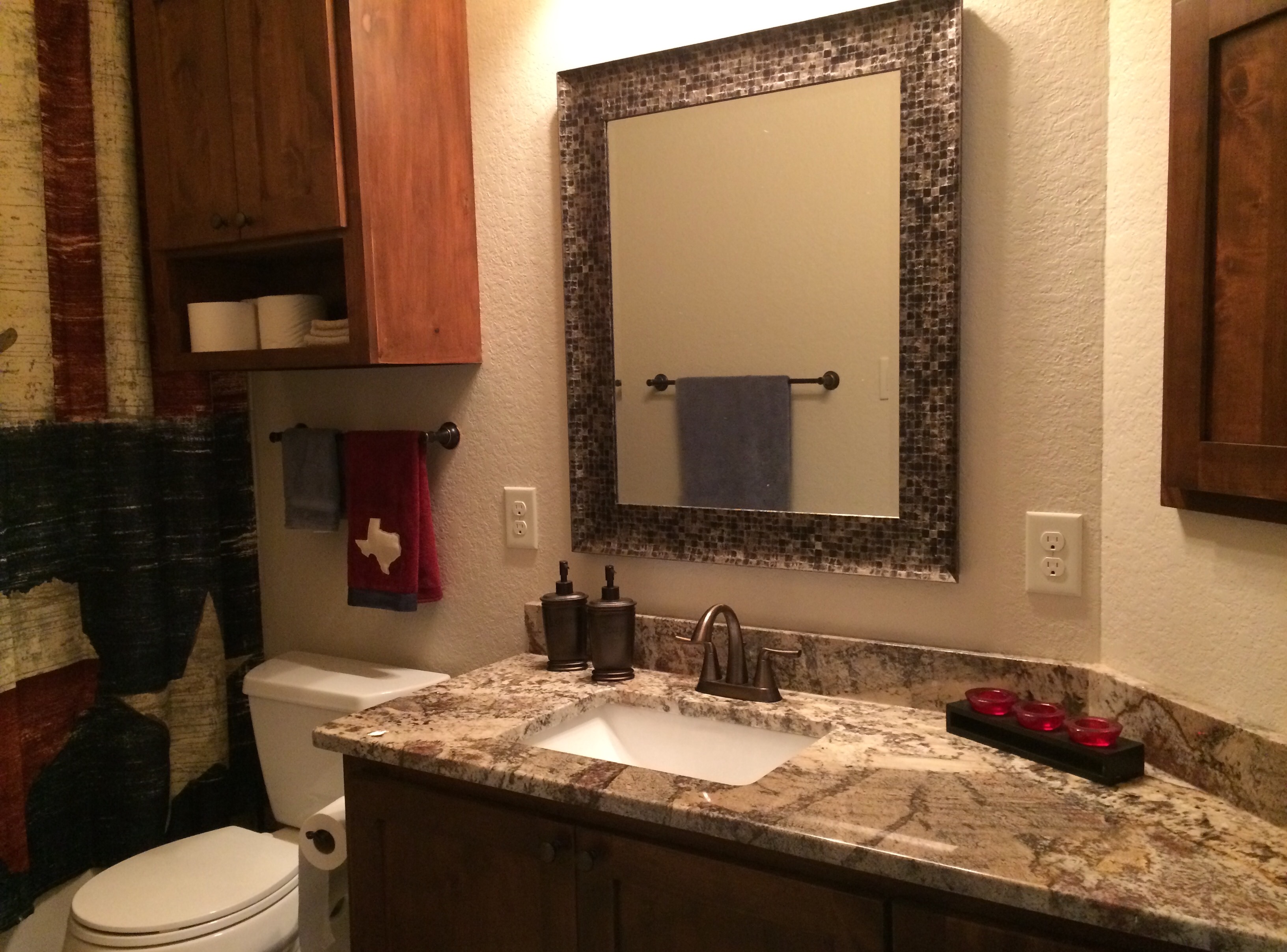 Jon and his dad also finished out the hall closet and guest bedroom closets. However, our painter (me!) still has to paint the shelves and cleating in the bedroom closets. I love the guest bathroom and look forward to family and friends visiting. I’ve tried to put in the extra touches (like a nice tub and shower fixture, among other things) to make our guests feel pampered.