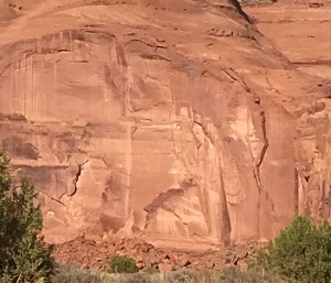 We spotted a nativity scene sculpted in desert rock (Mary kneeling on the left, the manger with the baby in the center, Joseph on the right bending over to look at the baby, a shepherd behind him to his left and a angel with towering wings to his right)