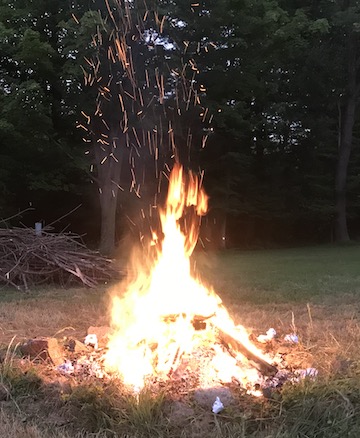 The embers burned red and orange inside the circle of stones, creating a faint glow in the velvet darkness of the cool summer night. I took a stick and stirred them. Sparks erupted and danced about in the air. I tossed in a few twigs, followed by several branches. The embers ignited the twigs and flames flickered, slowly surrounding the branches and igniting them as well. Soon the fire burned brightly, rekindled, providing light and warmth.