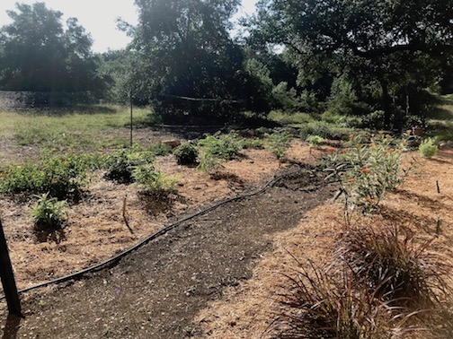 My husband and I planted a butterfly/hummingbird garden in the spring. We selected plants that were either native to our area in the Texas Hill Country or did well in our climate (heat and drought tolerant). We also tried to choose plants that were somewhat deer resistant. Because the deer, especially the young ones, will try almost anything.
