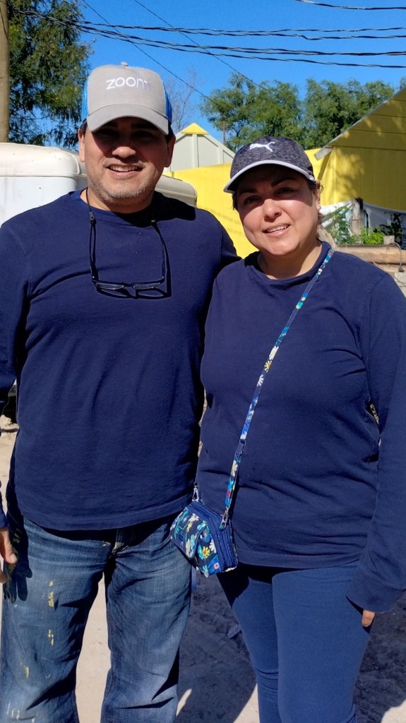For Elizabeth, the trip was such a blessing because she had gone on a mission trip when she was in her young teens and now in her fifties, she thought she was too old to go (really? Fifties? I’m thinking that’s NOT old at all). She was willing and God used her. She’s thankful for those who gave so she could go and be able to make a difference in people’s lives. She’s hooked and plans to go again, God willing. She had a bad knee and worried that she might fall—the rough roads in the Colonia are no joke—but everybody watched over her. She painted, she walked about Colonia talking to the neighbors, she learned how to use power tools, and she filled hundreds of bags with food at fiesta. And she counts it all joy.