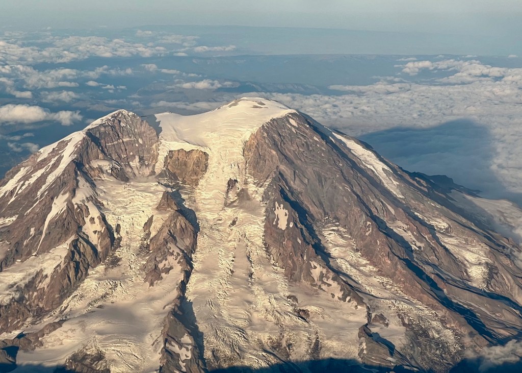 Lifting off out of Seattle we were treated to another spectacular sight: Mount Rainier lit by the afternoon sun.