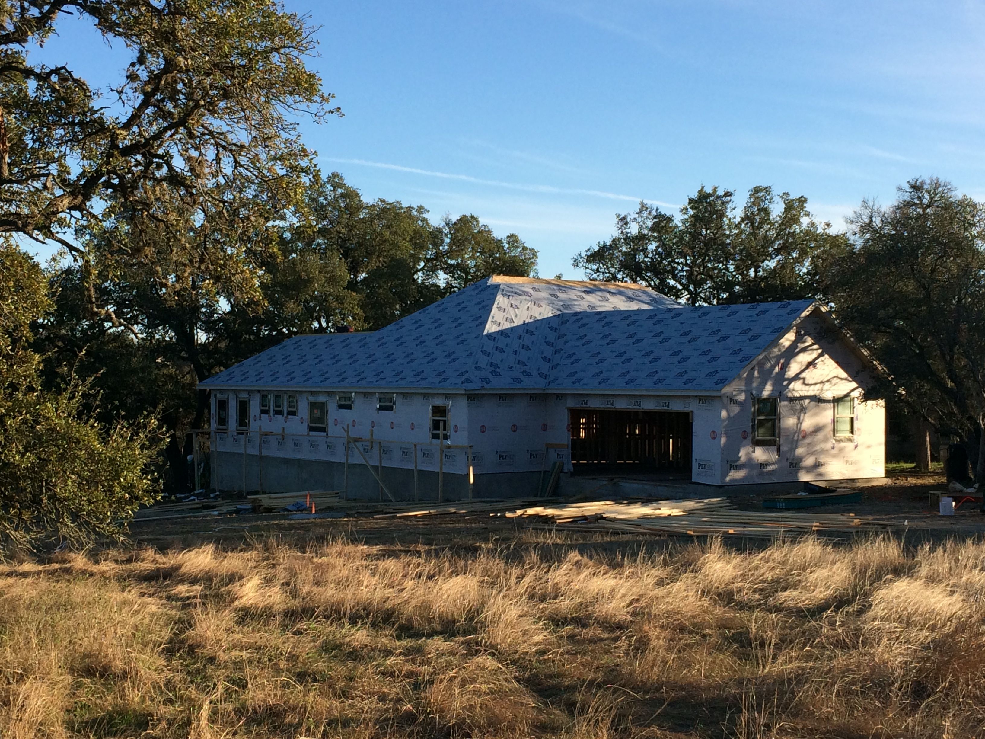 We decided to set up the camper in our front yard and spend the night. We had a lot invested in the piles of lumber stacked on our construction driveway. It was a bit challenging, but we finally positioned the camper between the front oaks in the front yard and the dumster (a very nice view). We’ve spent a lot of time in our camper and I know in the coming days, we’ll spend much more.